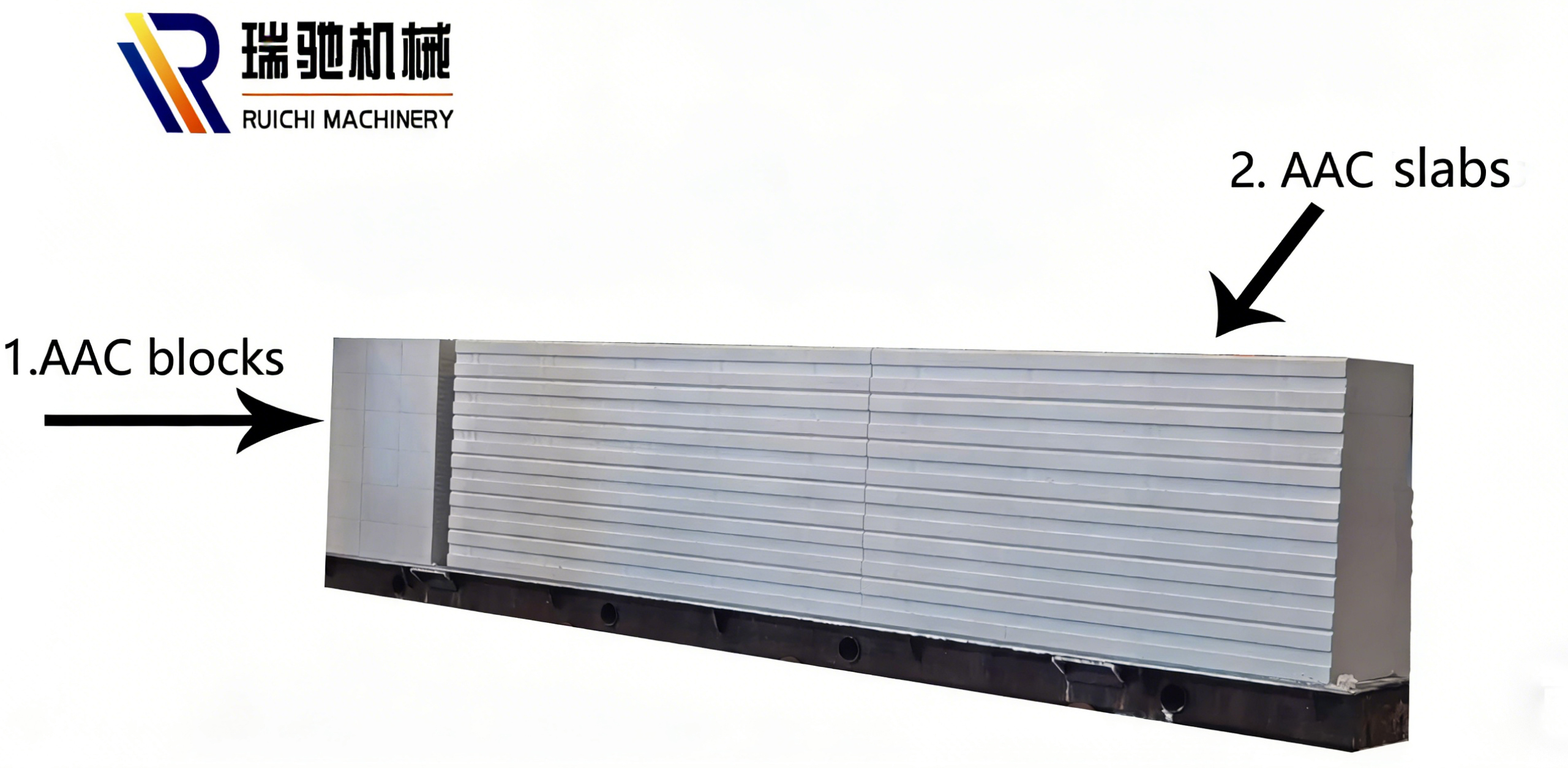 AAC autoclaved aerated concrete block and AAC panel production lines can be customized to specific capacity, configuration, and automation levels, including plant layout and equipment configuration. The production process of AAC production line equipment includes mixing,pouring, pre-curing, cutting, and autoclaving. The complete production line includes a jaw crusher,AAC cutter, autoclave, separator, and various accessories.
