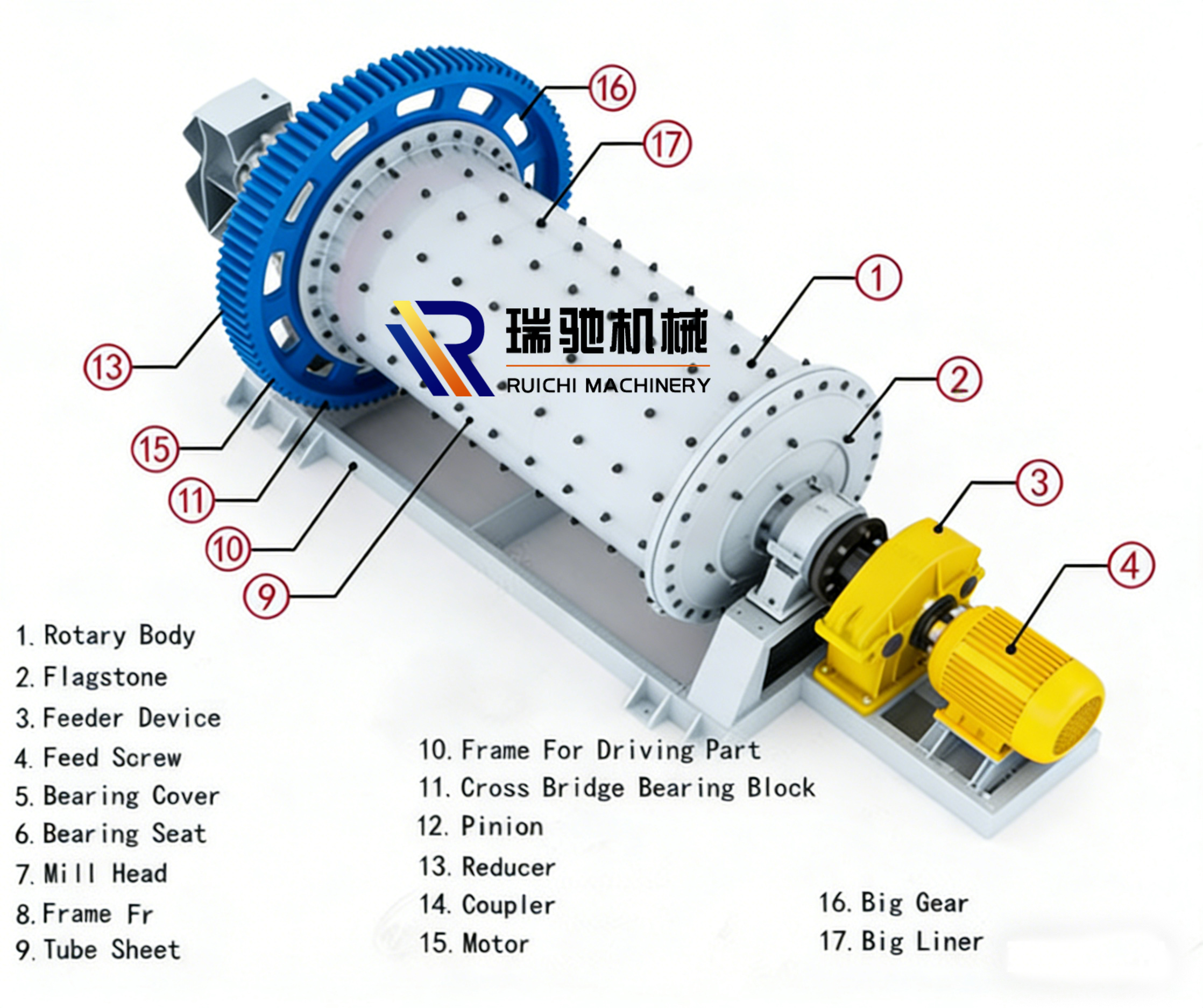 Grinding speed: Adjusts according to material type (e.g., 18-22 rpm for sand and gravel grinding, 22-25 rpm for fly ash grinding) to optimize crushing efficiency;