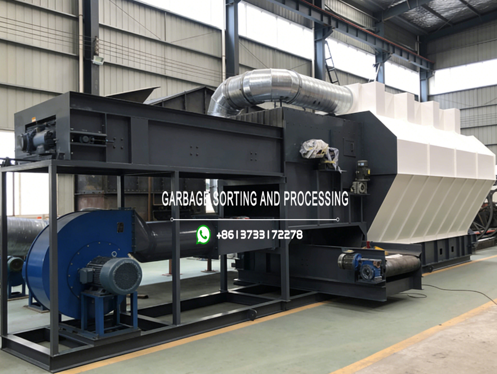 Working Principle: Mixed materials, after preliminary processing by Double-Shaft Shredder or Plastic Shredder Machine, are fed into the separator (via Conveyor Belt or Waste plate feeder), and under the combined action of airflow and rotating drum, lighter materials (paper, plastic bags, films, cloth strips processed by textile shredder machine) are carried by the airflow to the settling chamber or distant discharge belt; heavier materials (metals separable by Eddy Current Separator, stones, glass, ceramics) fall naturally due to gravity or inertia to the heavy material discharge belt. The fan speed and dampers are adjustable to optimize sorting efficiency and purity, and the exhaust duct connects to a dust removal and deodorization system to meet emission standards, supporting the operation of waste sorting machine and garbage separation machine.